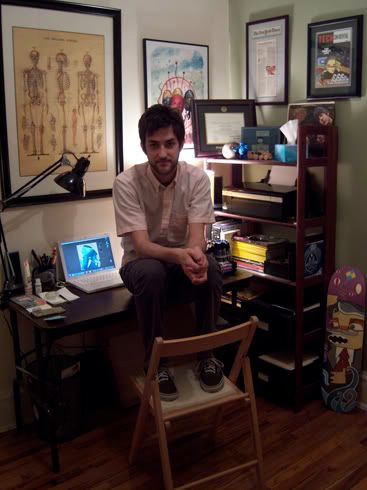 the Portland Studios Blog. You should check it out. He got most of the staff at Portland to submit an illustration on the theme of cowboys, rendered on a 4x6 card. There are some real gems there.