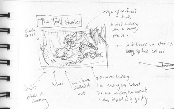 This is often what my thumbnails look like, with little notes pointing out important narrative details.